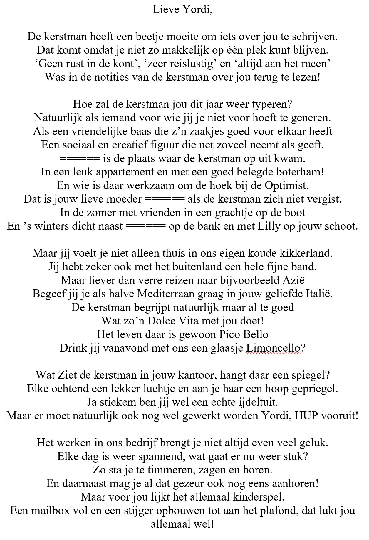 Hoi, ik ben Amanda. Leuk dat je een kijkje neemt op mijn website! Ik ben 40 jaar en moeder van vier prachtige dochters. Naast mijn werk en passie voor sport ben ik ook graag creatief bezig met mijn meiden. Traktaties, cadeautjes voor verjaardagen, maken van surprises en het schrijven van gedichten is waar ik als moeder zijnde graag mijn energie in steek. Ik richt mij op het schrijven van gedichten maar ben ook beschikbaar voor het schrijven van algemene brieven, opstellen van een sollicitatiebrief, maken van een presentatie of het schrijven van een interview. Voor het schrijven van gedichten en persoonlijke teksten kun je denken aan gelegenheden als Sinterklaas, Kerst, Valentijn maar ook bij het uit dienst treden van een collega of bij het verlies van een dierbare en het daarbij schrijven van een uitvaartspeech. Graag bied ik een helpende hand.